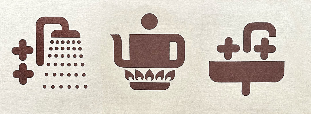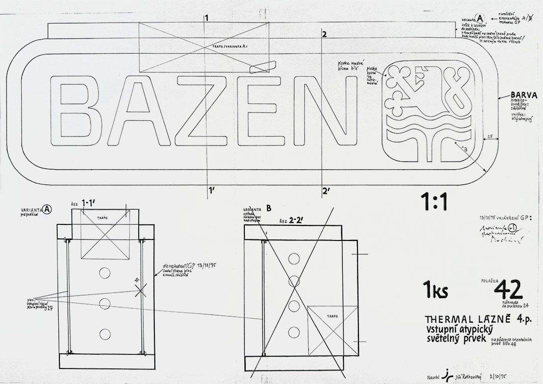 Jiří Rathouský was a solid part of the Machonin design team of Hotel Thermal. His graphic work had a strong and prominent place. He always adapted his designs to the type of building.